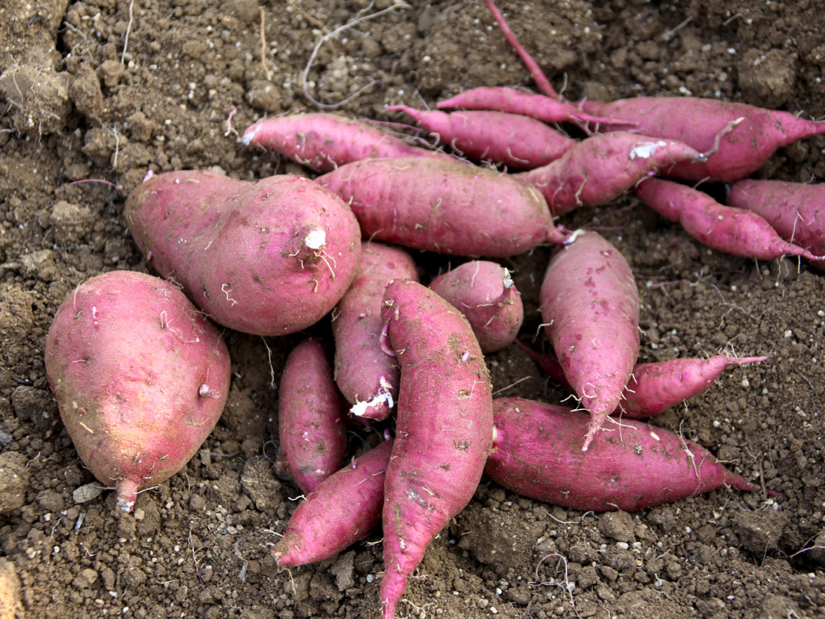 삽식 후 110~120일정도에서 수확하는게 상품성이 있는 괴근 수량이 많고 다음해의 씨고구마용은 130~140일 수확도 좋으며 수확시 저온에 의해 냉해를 받지 않도록 주의해야 해요.